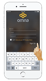 Enter your Name, E-mail address, and choose a Password. You must also accept the Terms of Use and Privacy Policy by checking the box. Tap Sign Up to create your Omna account.