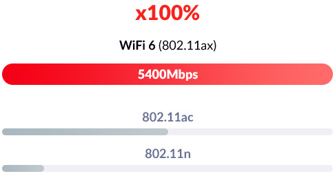 Wi-Fi 6, also known as 802.11ax, is the next-generation standard in Wi-Fi technology. Wi-Fi 6 has significant improvements on the previous 802.11ac Wi-Fi standard. Now you can watch, game and browse at a faster and more efficient rate from every room in the house and with more devices than ever.
