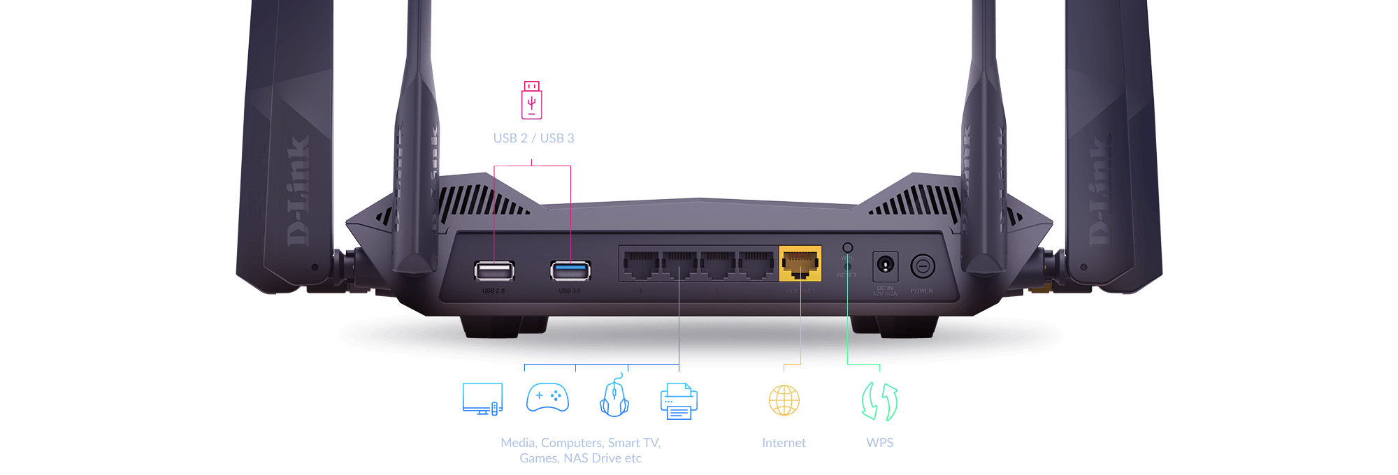 With far more processing power over any common Wi-Fi 5 router, the DIR-X5460’s triple-core 1.5 GHz CPU can tackle huge amounts of data transfers, so you can enjoy lag-free gaming and vivid 4k//HD streaming without buffering.