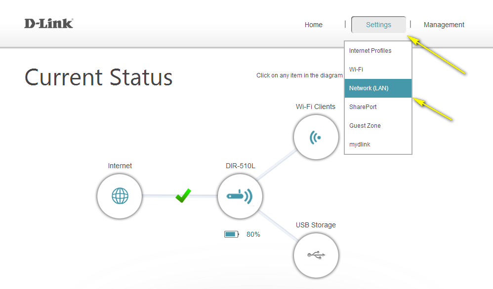 Step 3: Move the cursor to the Settings tab and then click Network (LAN).