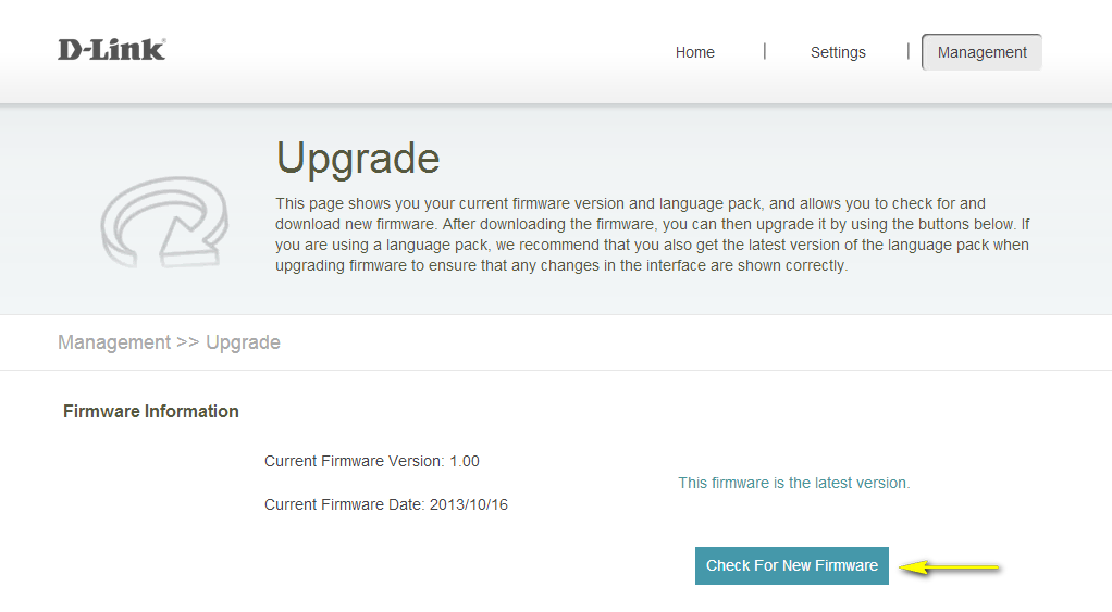 Step 4: Click the Check For New Firmware button. If the DIR-880L finds new firmware, then the firmware will be upgraded automatically.