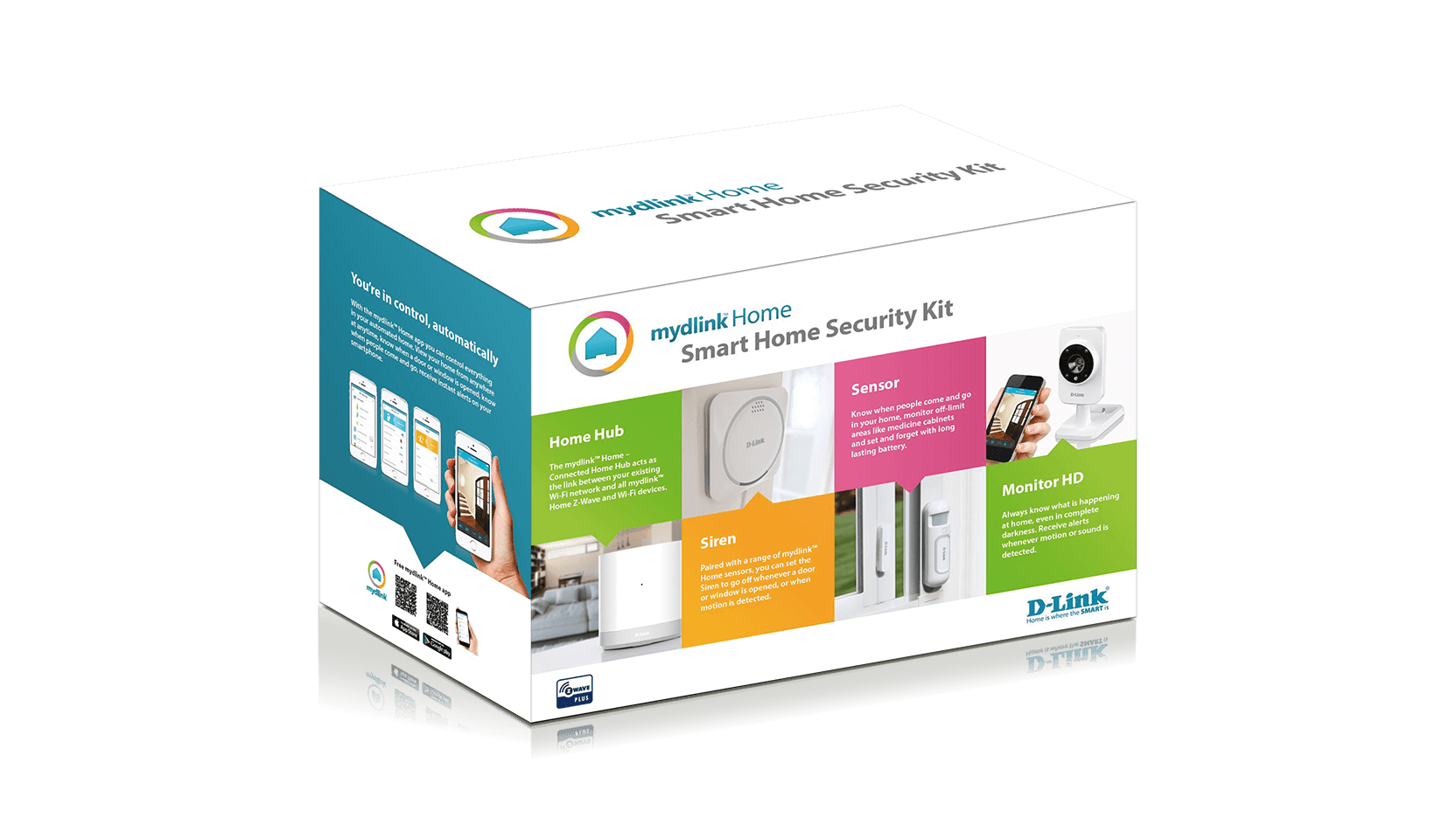 Poręczny zestaw startowy umożliwiający ochronę i monitorowanie domu z każdego miejsca. W skład zestawu wchodzą: Connected Home Hub, czujnik okien/drzwi, syrena z opcjonalnym zasilaniem z baterii1 oraz kamera Monitor HD. Urządzenia wymieniają się wzajemnie informacjami, a za pomocą aplikacji mydlink Home na smartfony i tablety użytkownik decyduje, jak mają działać.