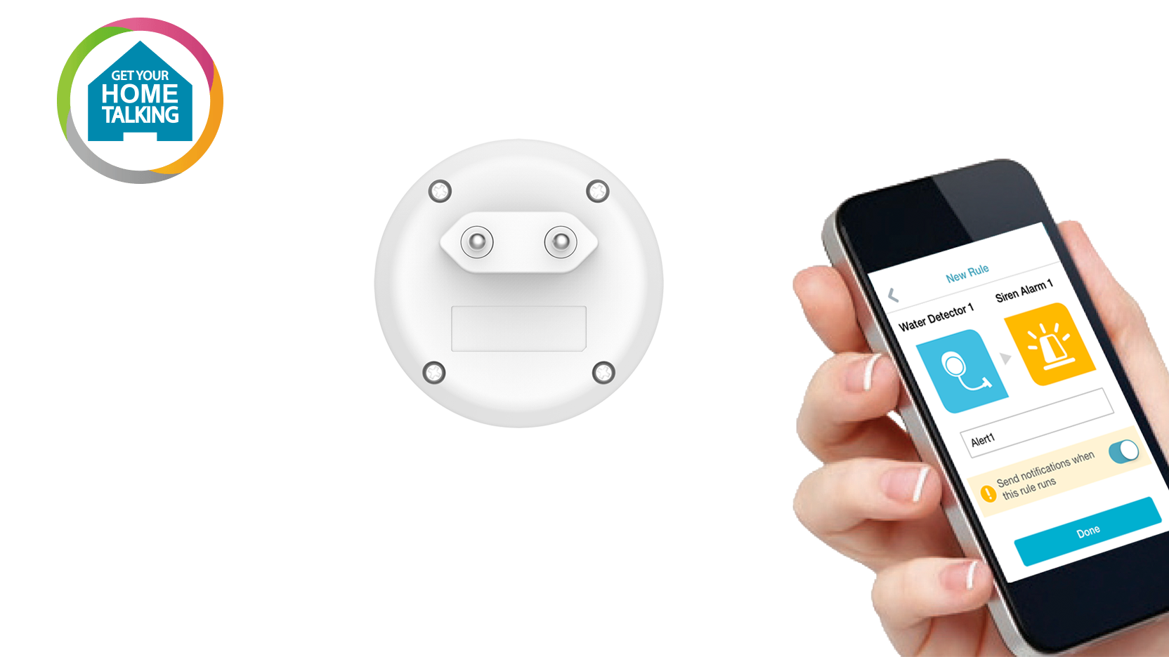 Czujnik zalania, współpracujący z innymi urządzeniami mydlink™ Home, wykryje nawet niewielki wyciek wody. Prosty w instalacji, po wykryciu przecieku natychmiast wysyła powiadomienie o zdarzeniu przez domową siecią Wi-Fi. Użytkownik może je odebrać na smartfonie lub tablecie w każdym miejscu z dostępem do Internetu.