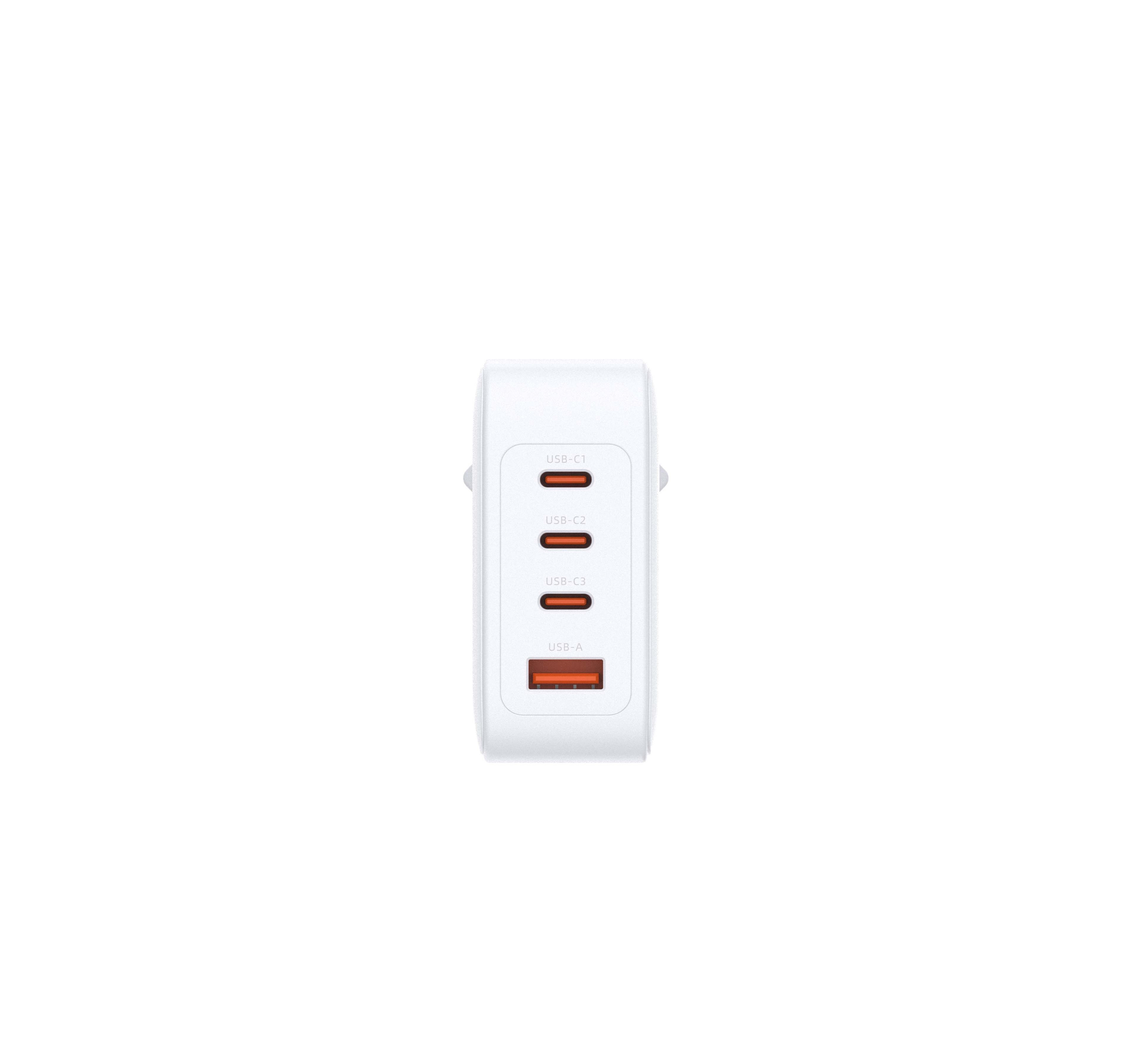 - Cztery porty USB-C/USB-A – trzy porty USB-C i jeden USB-A umożliwiają jednoczesne ładowanie aż 4 urządzeń.