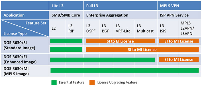 - Duża gęstość portów, stakowanie oraz łatwe zarządzanie umożliwiają użycie przełączników rodziny DGS-3630 w wielu różnych zastosowaniach
