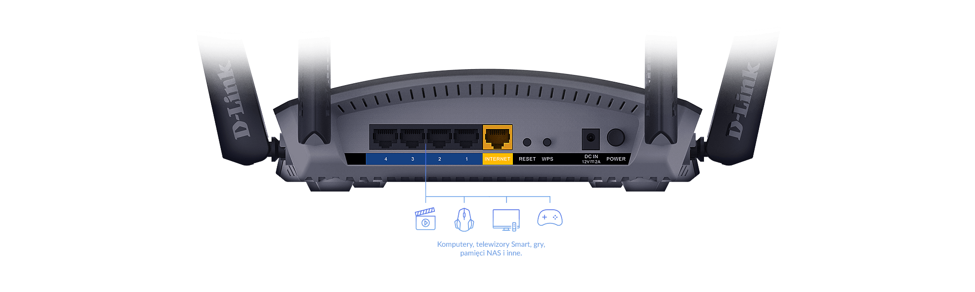 DIR-1960 udostępnia jednocześnie dwa pasma sieci Wi-Fi wykorzystując technologię AC Wave 2 z MU-MIMO, co przekłada się na transfer na poziomie 1900 Mbit/s.