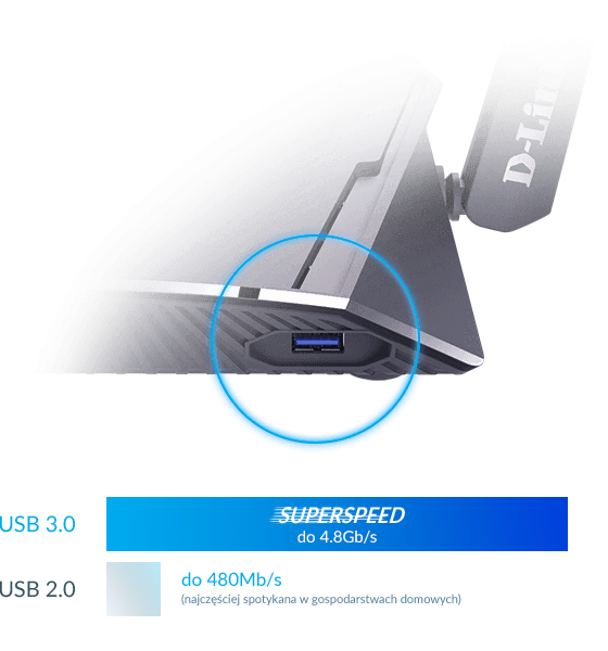 Współdzielenie zdjęć, wideo i muzyki w sieci domowej. Wystarczy skorzystać z szybkiego portu USB 3.0, aby podłączyć do routera dyski USB lub inne urządzenia.