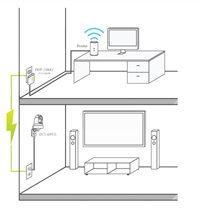The DCS-6045LKT plugs directly into a power outlet, and does not require any additional cables. PowerLine technology gives you the freedom to place your camera in locations where your existing wired or wireless network just won’t reach; all you need is a power socket! Included in this kit is a DHP-308AV PowerLine AV Mini Adapter, so you can get your new PowerLine camera up and running in no time. Simply connect the included PowerLine adapter to your router and an available power socket, and then the DCS-6045L into another available power socket in your home or office, that’s it!