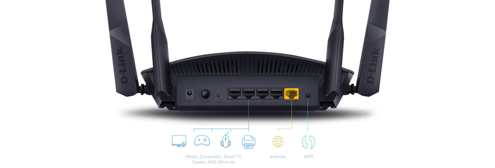 4 high-gain external antennas, and built-in power amplifiers work together to generate a broader and more reliable Wi-Fi signal to reach more rooms and provide coverage throughout your home2.