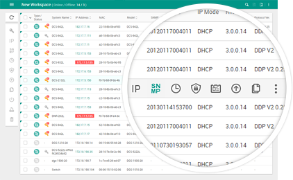 Select either individual or group settings, upgrade firmware, back up or restore configurations, solve IP conflicts, change user credentials, configure the time and date, enable or disable SNMP for network management, reboot or reset devices, and more.