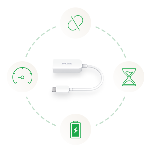 The DUB-E250 is fully backwards compatible with existing Fast Ethernet or Gigabit networks, allowing you to connect to a wired network wherever you are.