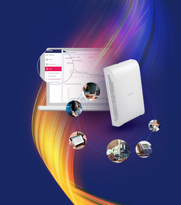 D-Link’s Nuclias cloud solution makes deploying a wireless network simple. Nuclias access points are automatically configured by the Nuclias cloud, and instant alerts let you know what’s happening through the browser or the Nuclias app.