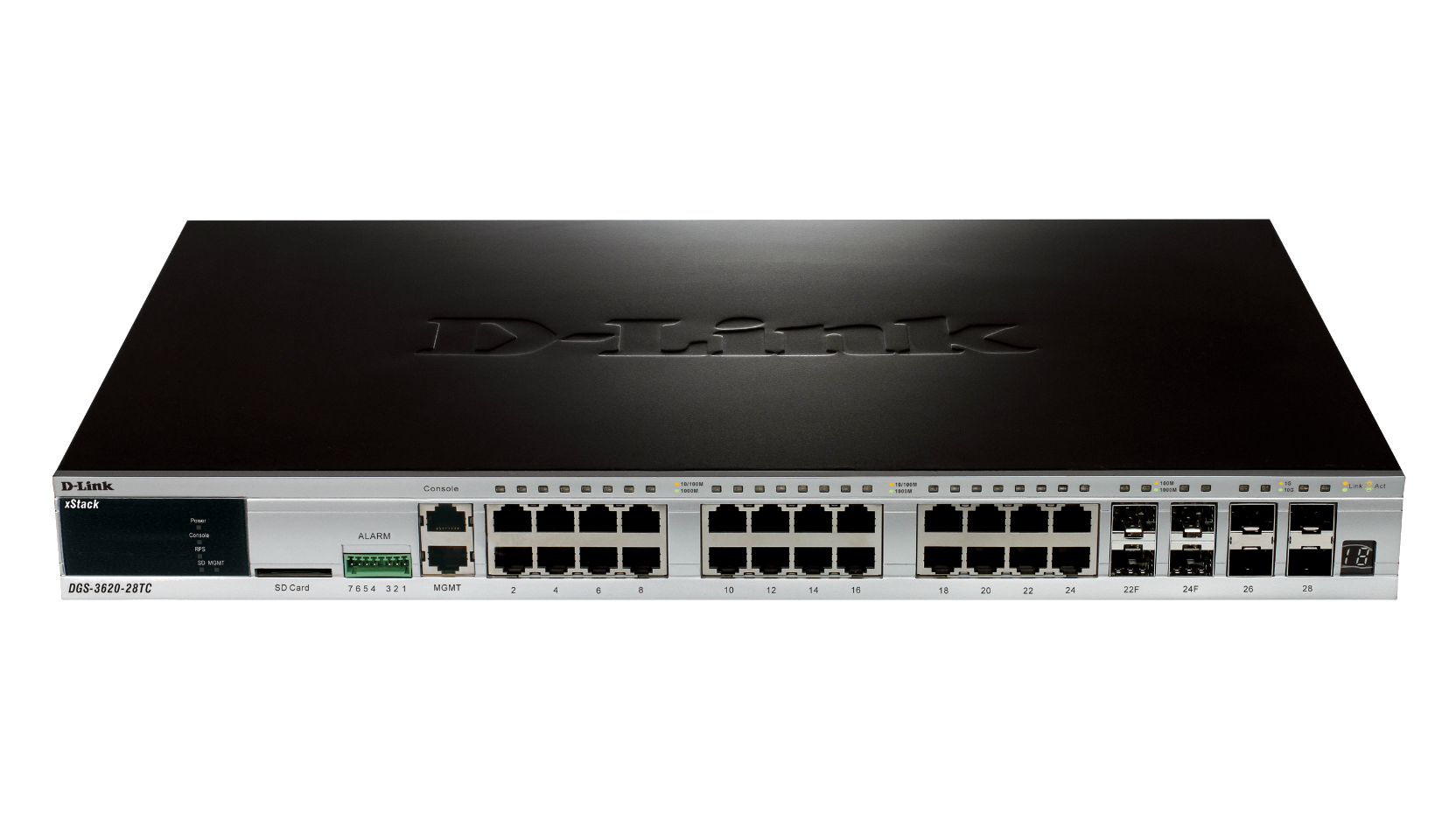 - DGS-3620-28TC/SI and EI: 28-Port Gigabit L3 Stackable Managed Switch including 4 x Combo 1000BASE-T/SFP ports and 4 x SFP+ 10 Gbps ports (Standard and Enhanced Image)