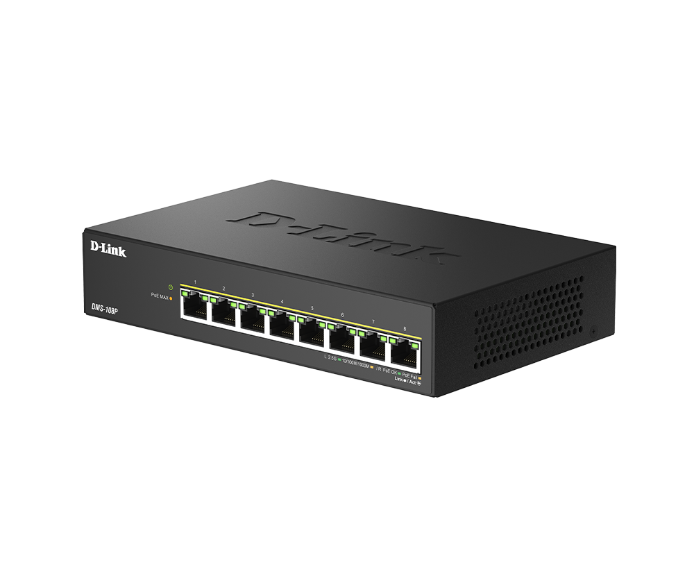 The cost-effective DMS-108P not only delivers plug-and-play 2.5G PoE connectivity for edge powered devices, it offers performance optimization to help eliminate bottlenecks for applications such as Wi-Fi 6, HD surveillance, 4K/8K streaming, and much more.