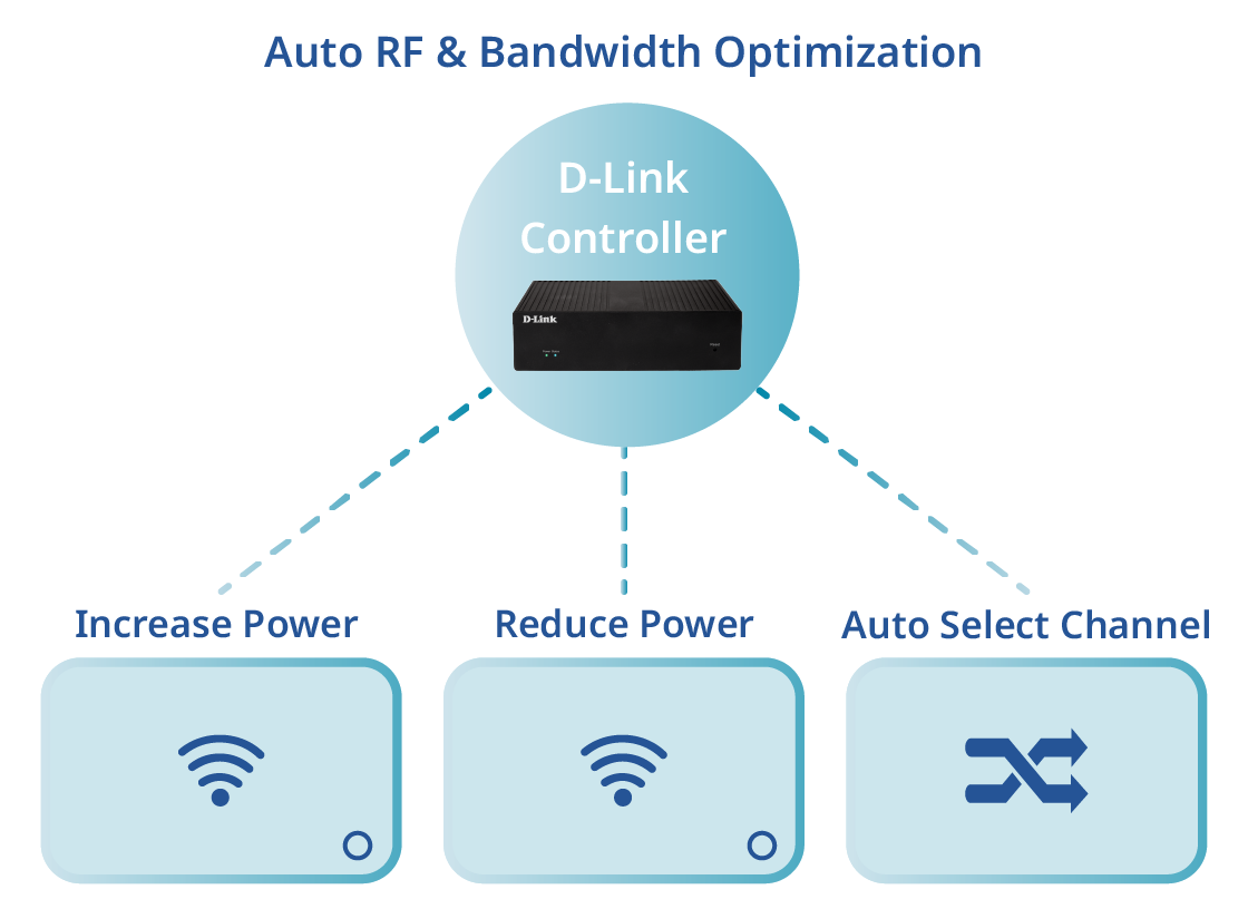 Optimizes wireless performance with Auto RF and Bandwidth Optimization, ensuring optimal connectivity and minimal interference.