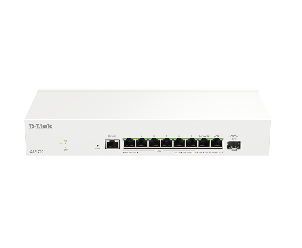 The DBR-700 is a high-performance business router featuring 2.5G interfaces, including SFP ports, providing flexible and stable wired connectivity, particularly for long-distance transmission. Multi-WAN functionality ensures uninterrupted network services by automatically switching to a backup WAN connection and load-sharing internet access. With a powerful firewall and supports IPsec VPN tunnels, your remote access is always secured and encrypted. Enhanced AP management simplifies centralized control of multiple access points, making the DBR-700 an excellent choice for businesses seeking reliable, secure, and high-speed networking.