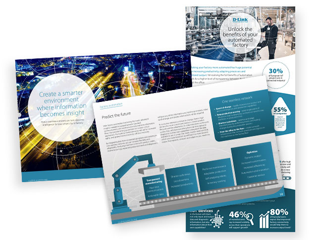 As factories become more automated, the expectation is that this will lead to a more streamlined and efficient manufacturing process. Unify your enterprise and factory network with our range of Business and Industrial Ethernet switches into one secure, reliable network to bring the benefits of a smart environment together, complete with real-time communication and monitoring.