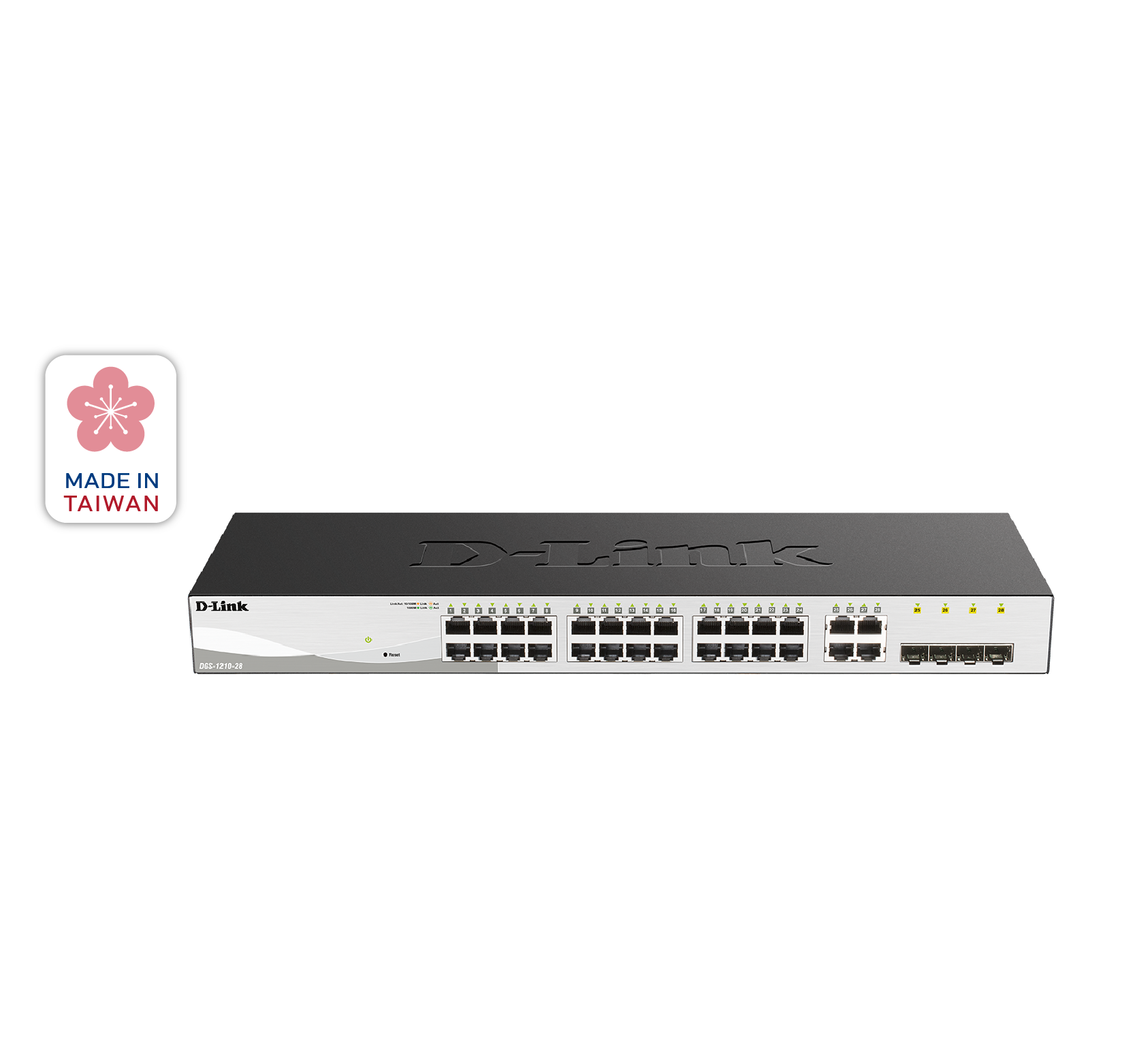 由MIT製造的,D-Link DGS-1210 系列智慧網管交換機,提供一系列連接埠介面種類及數量的多元選擇、多種管理介面、和Layer 2 網路設定。