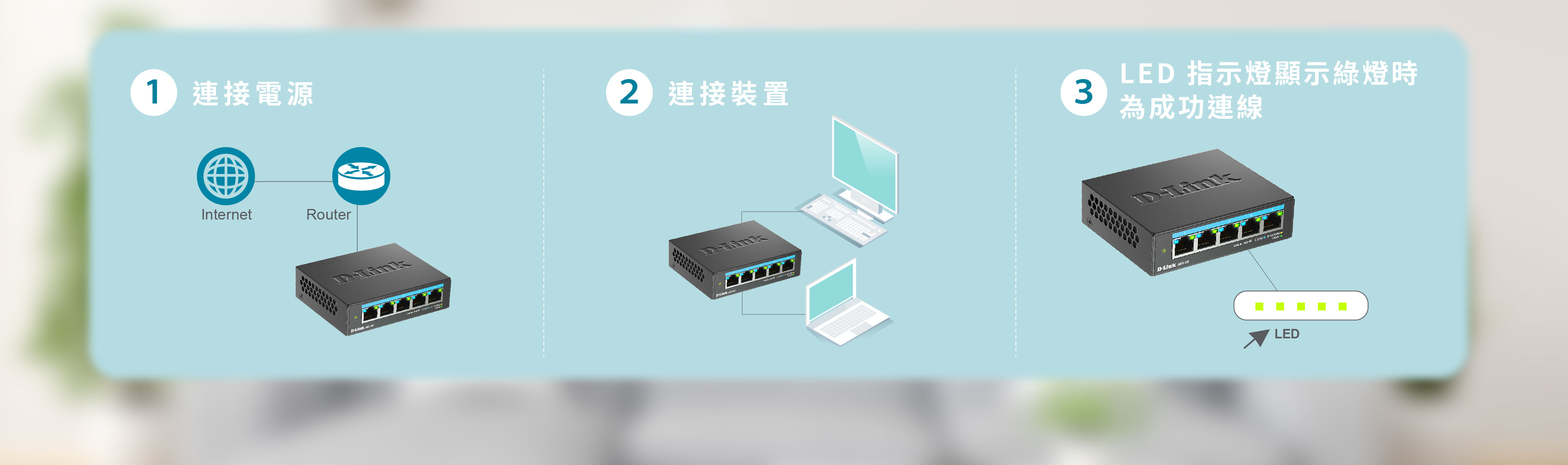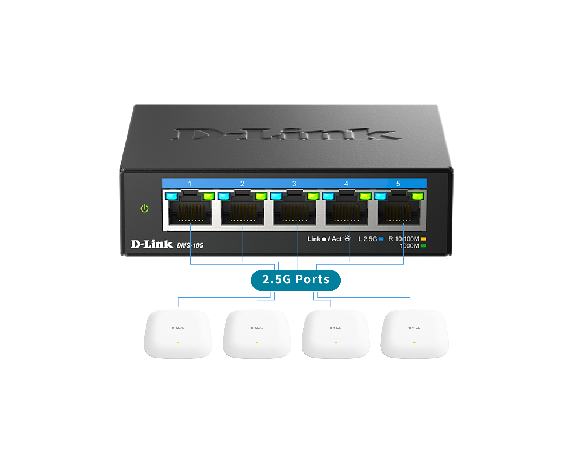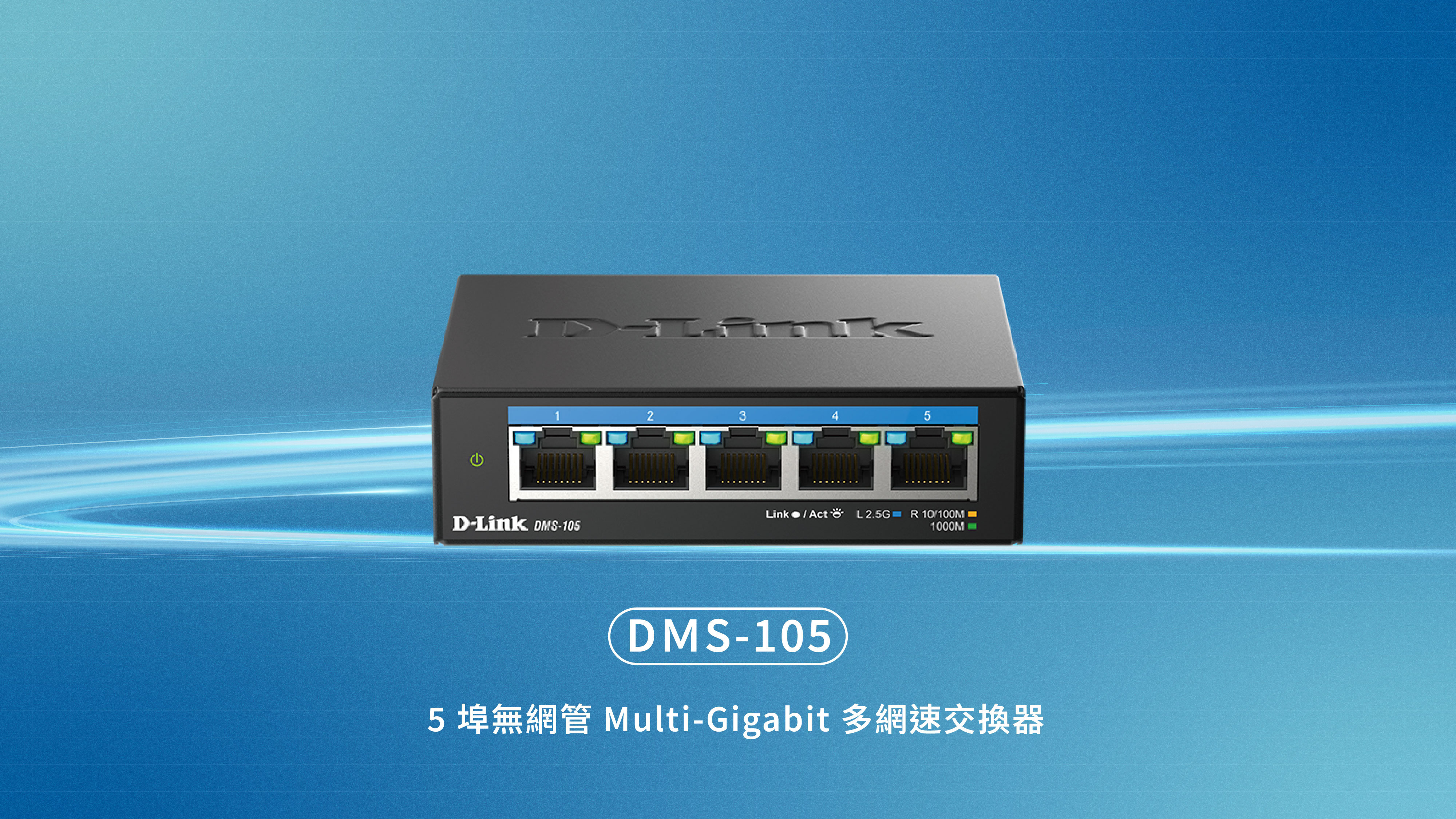 DMS-105 可自動偵測各網路埠所需的速度並自動協調網路流量,讓每個連網設備盡可能獲得最大速度。