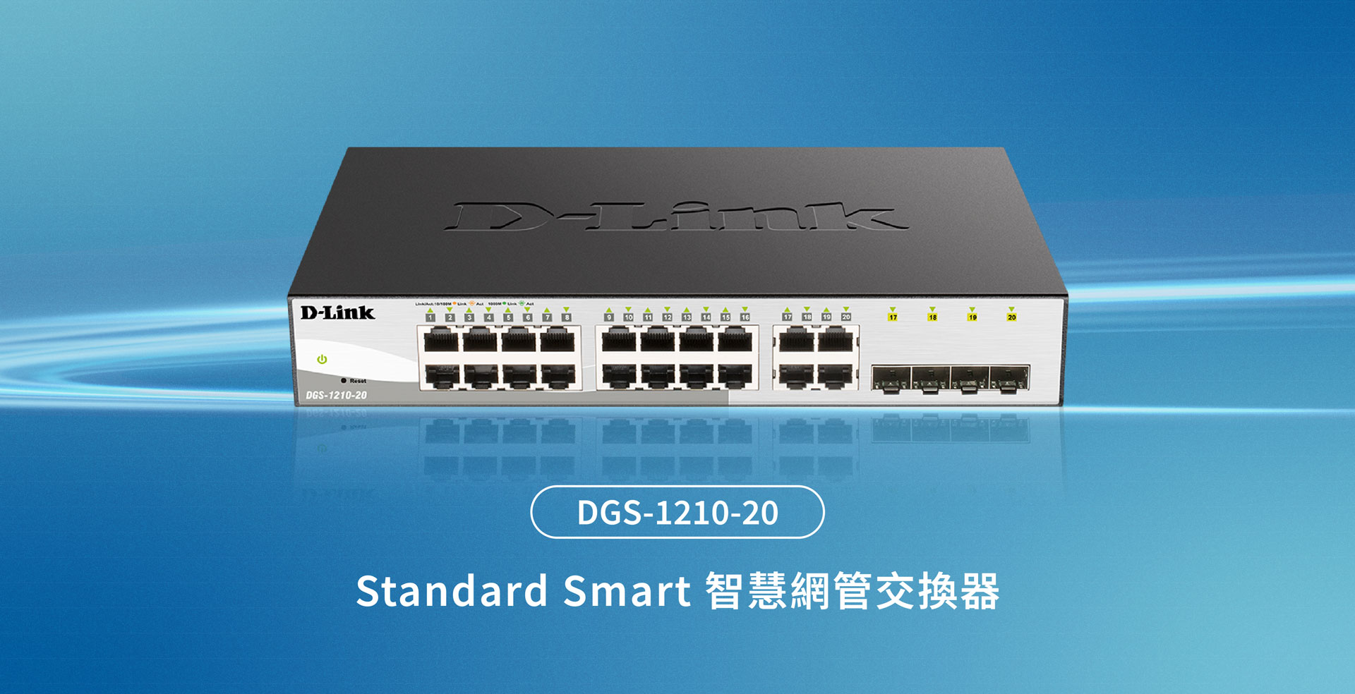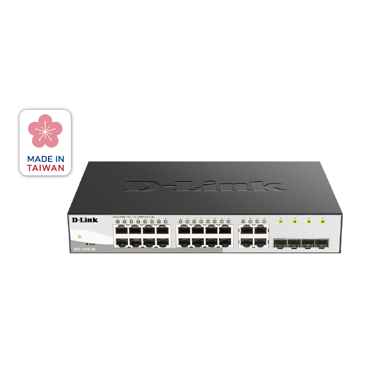 由MIT製造的,D-Link DGS-1210 系列智慧網管交換機,提供一系列連接埠介面種類及數量的多元選擇、多種管理介面、和Layer 2 網路設定。