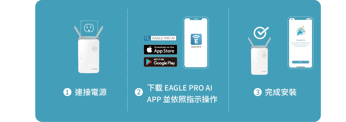 若您想在家中建立全網狀網路無線網路系統 , 只要依照使用需求 , 彈性擴充 D-Link EAGLE PRO AI 系列產品 , 即可透過超簡易的安裝步驟 , 快速完成 Mesh 網路系統的布建 。 不論任何坪數 、 不管是小家庭或大家庭都非常適合 。