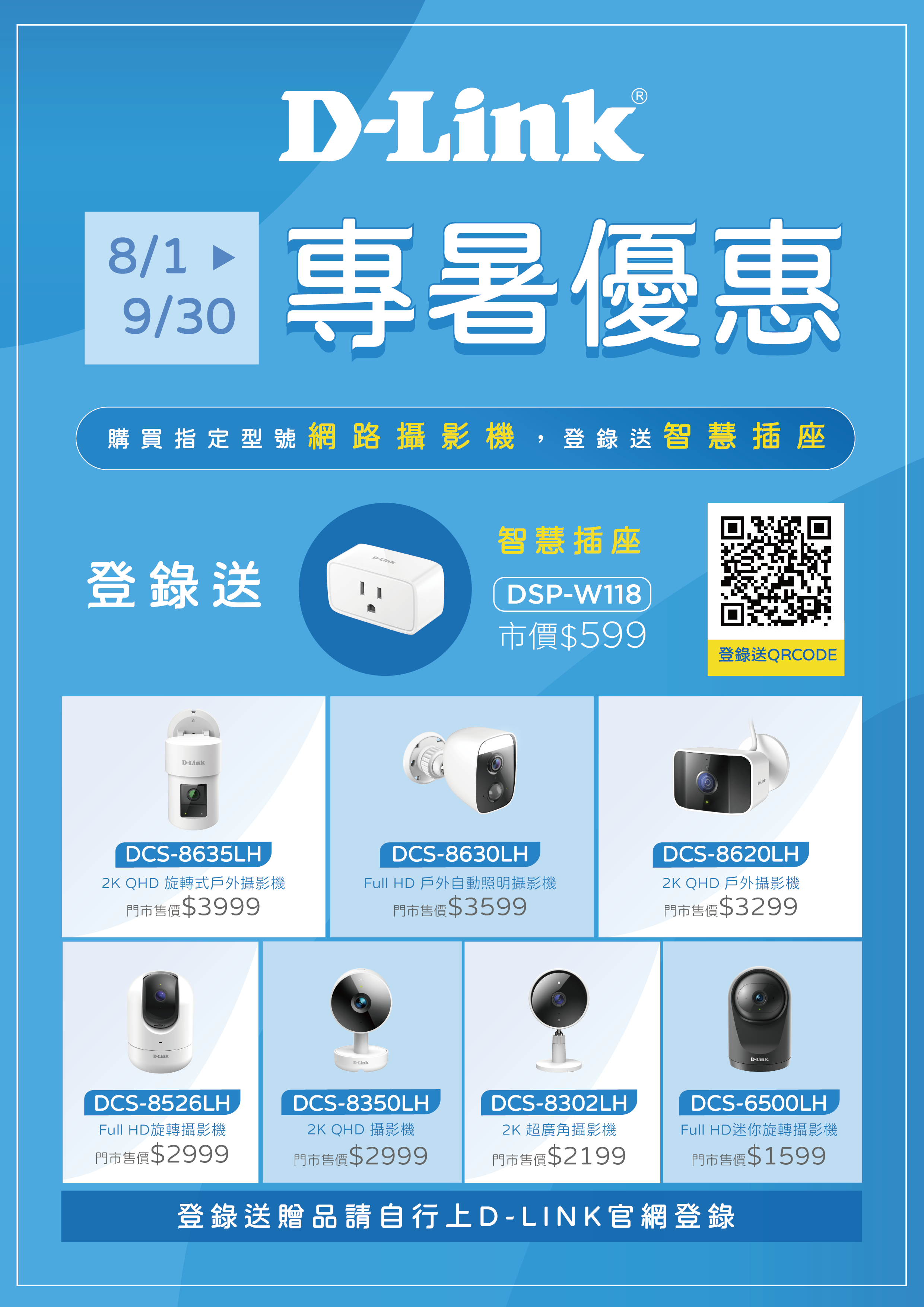 D-Link 專暑優惠|購買指定網路攝影機 登錄送 Wi-Fi 智慧插座 DSP-W118