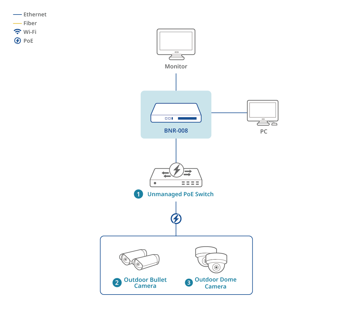 The BNR-008 serves as the backbone in the surveillance ecosystem. By integrating seamlessly with PoE switches and IP cameras, it establishes a reliable foundation for continuous 24/7 recording and high-definition monitoring across the entire business.