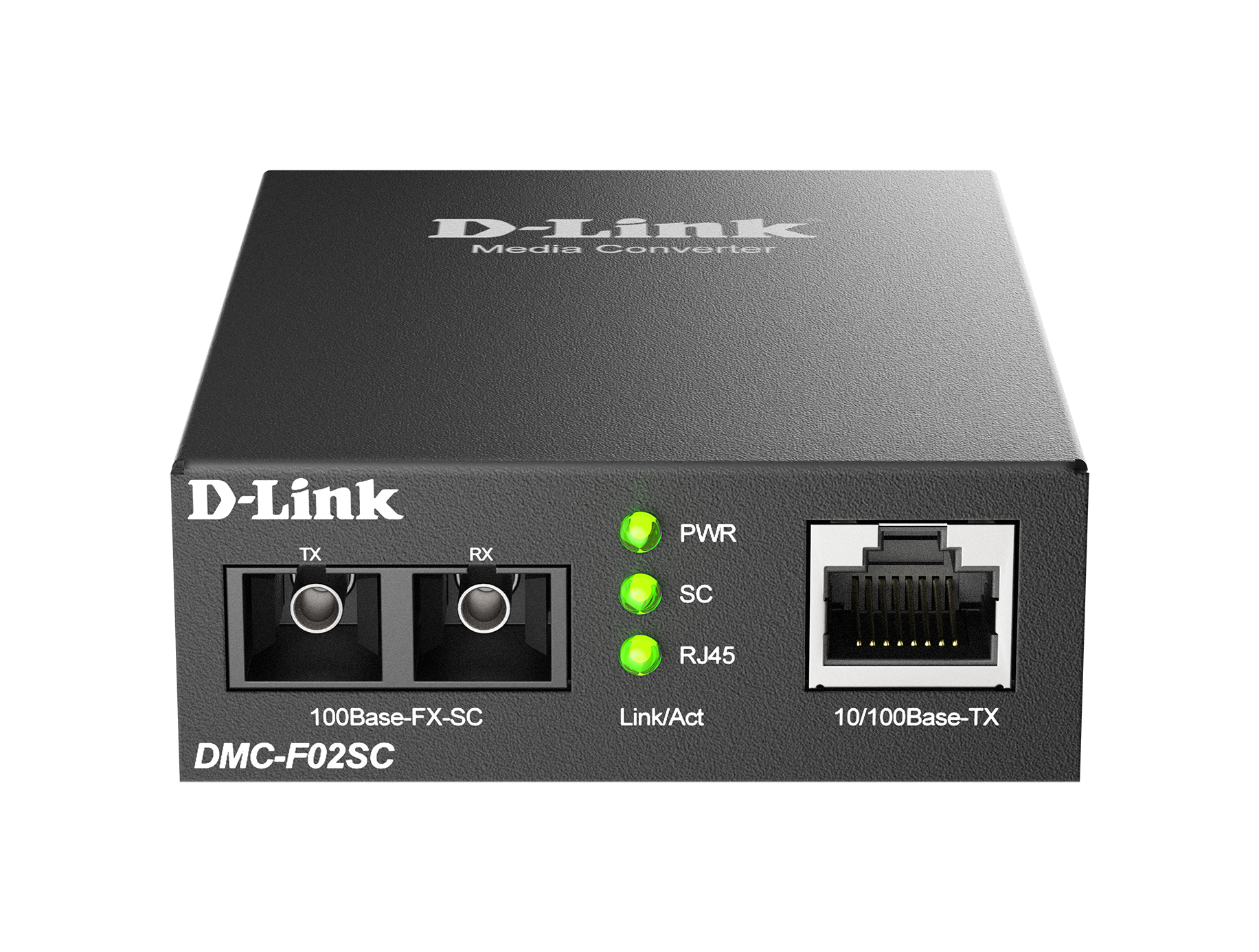 The DMC-F02SC is a standalone media converter designed to convert a twisted-pair 10/100Base- TX Fast Ethernet connection to a multi-mode fibre 100Base-FX Fast Ethernet connection to extend a connection distance (up to 2 km) between two devices. This media converter is equipped with one RJ-45 for twisted-pair and one fibre optic SC port.