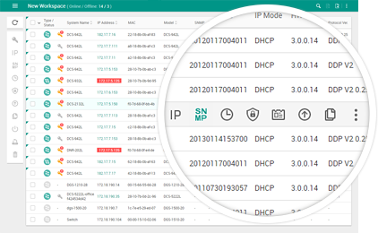 Select either individual or group settings, upgrade firmware, back up or restore configurations, solve IP conflicts, change user credentials, configure the time and date, enable or disable SNMP for network management, reboot or reset devices, and more.