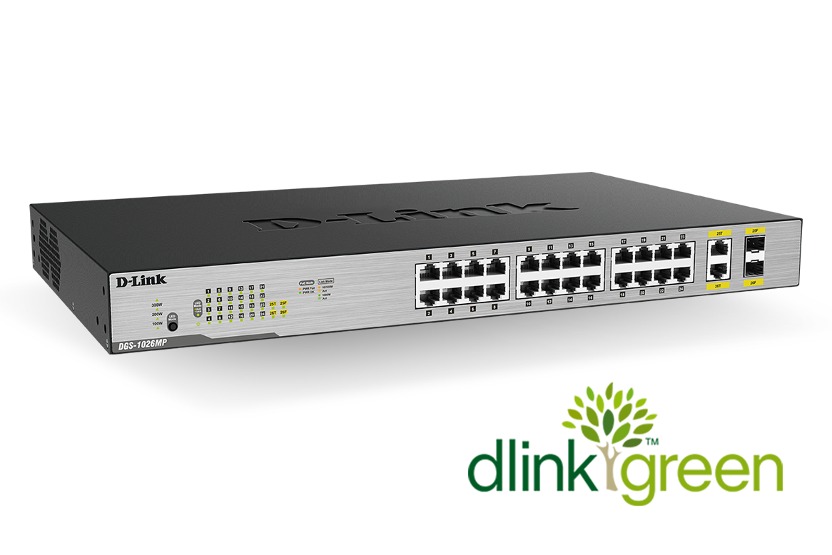 The D-Link DGS-1026MP enables users to easily connect and power PoE-capable devices such as wireless access points (APs), IP cameras, and IP phones.