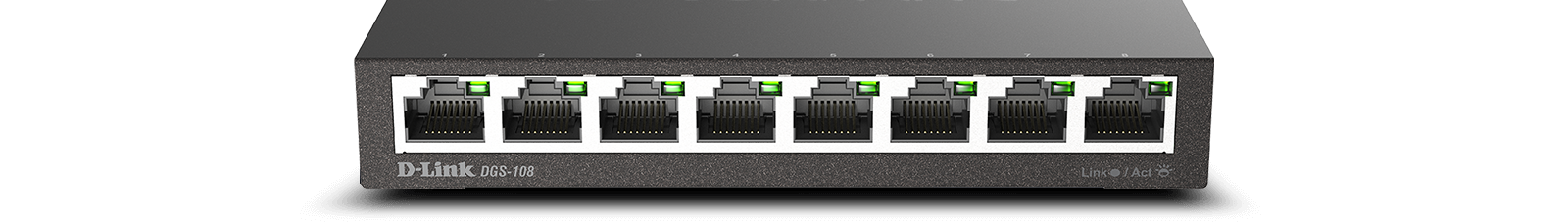 The DGS-108 8-Port Gigabit Unmanaged Desktop Switch offers an economical way for SOHO and small and medium businesses to benefit from the increased bandwidth of Gigabit Ethernet. It provides eight Gigabit ports for easy expansion of your network and a quick way to upgrade your network to Gigabit connectivity.