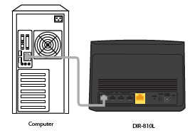 Step 2: Connect an Ethernet cable from your computer to a LAN port (Port 1, 2, 3 or 4) on the DIR-810L