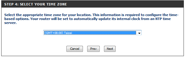 Select your time zone from the drop-down menu and click Next to continue.