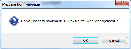 If you want to create a bookmark to the router management page, click OK. Click Cancel if you do not want to create a bookmark.