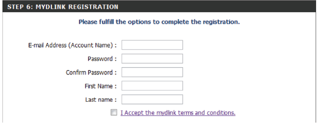 b) If you selected “No, I want to register and login with a new mydlink account,” please fulfill the required information in order to create a new mydlink account.